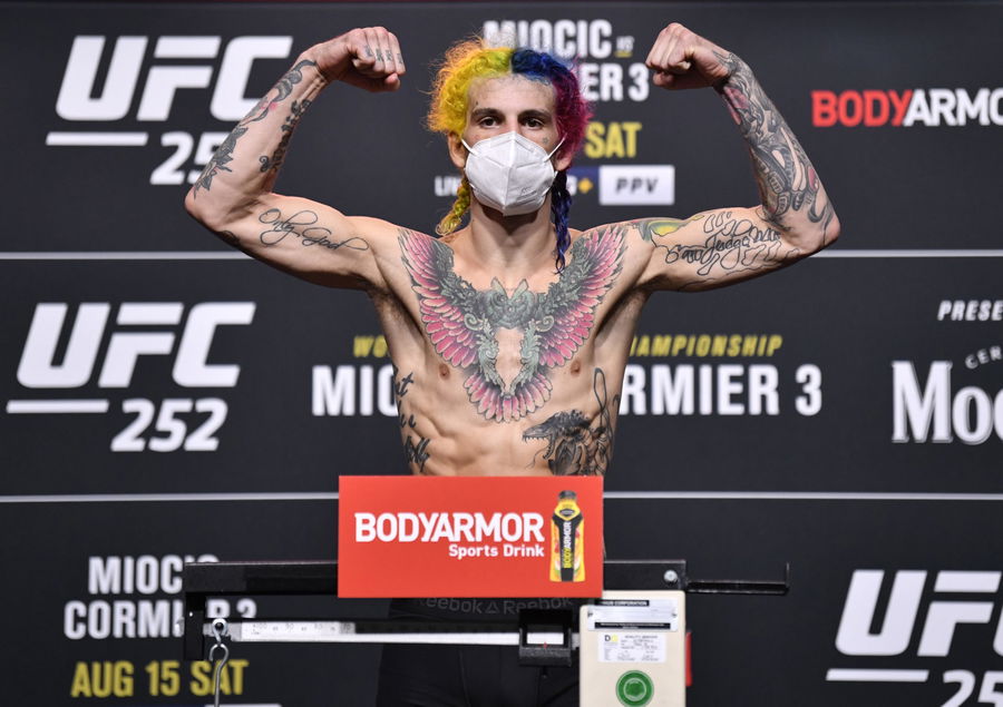 LAS VEGAS, NEVADA – AUGUST 14: Sean O’Malley poses on the scale during the UFC 252 weigh-in at UFC APEX on August 14, 2020 in Las Vegas, Nevada. (Photo by Jeff Bottari/Zuffa LLC)
