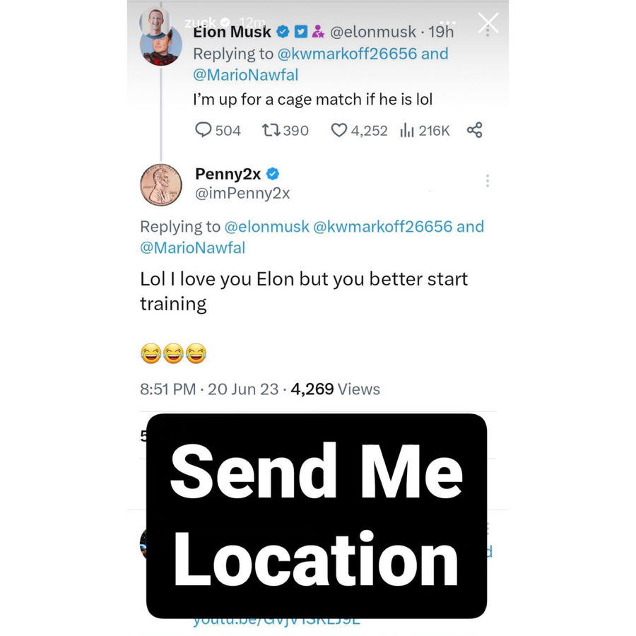 The rivalry between Elon Musk and Mark Zuckerberg escalated when Musk challenged Zuckerberg to a physical fight, specifically a “cage match”. This exchange stemmed from Meta’s plans, owned by Zuckerberg, to develop a text-based social media platform as a competitor to Twitter. In response to Musk’s tweet suggesting a cage match, Zuckerberg confidently replied on Instagram, saying, “Send Me Location”.