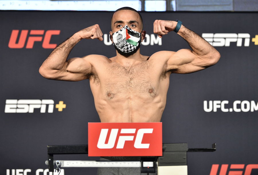 LAS VEGAS, NEVADA – JUNE 19: Belal Muhammad poses on the scale during the UFC weigh-in at UFC APEX on June 19, 2020 in Las Vegas, Nevada. (Photo by Chris Unger/Zuffa LLC)