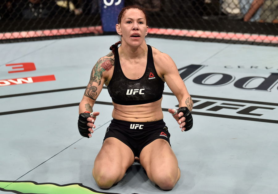 LAS VEGAS, NV – MARCH 03: Cris Cyborg of Brazil celebrates after her TKO victory over Yana Kunitskaya of Russia in their women’s featherweight bout during the UFC 222 event inside T-Mobile Arena on March 3, 2018 in Las Vegas, Nevada. (Photo by Jeff Bottari/Zuffa LLC/Zuffa LLC via Getty Images)