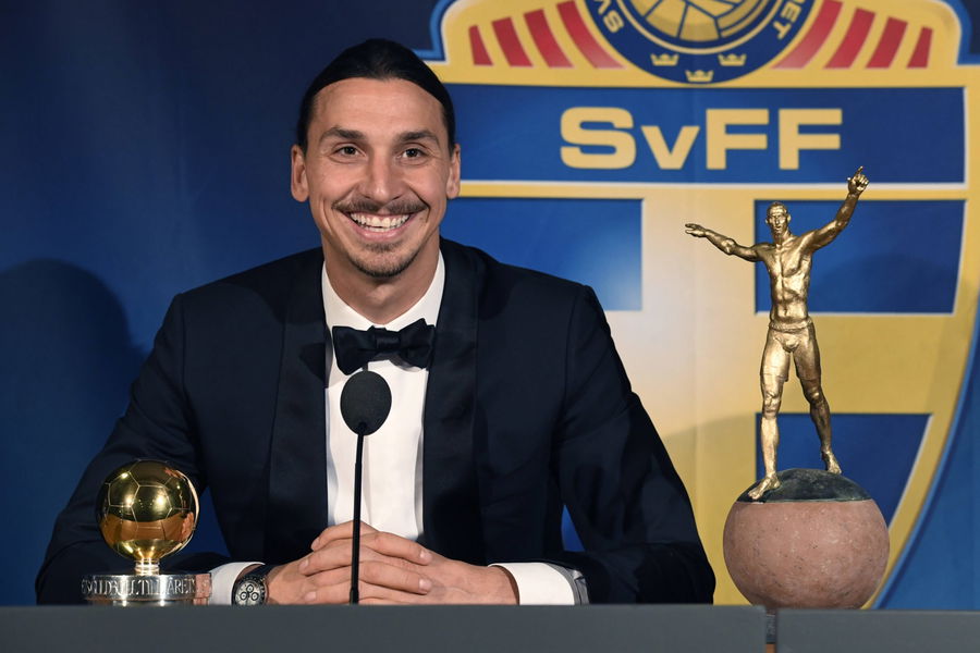 STOCKHOLM 2016-11-21 Zlatan Ibrahimovic med Guldbollen och en kopia av den staty som skall resas utanför Friends Arena talar under en presskonferens efter Fotbollsgalan i Globen i Stockholm pa mandagskvällen. Foto Jonas Ekströmer / TT / kod 10030 STOCKHOLM SVERIGE x10030x *** STOCKHOLM 2016 11 21 Zlatan Ibrahimovic with the Ballon dOr and a copy of the statue to be erected outside the Friends Arena speaks during a press conference after the Football Gala in the Globen in Stockholm on Monday evening Photo Jonas Ekströmer TT code 10030 STOCKHOLM SWEDEN x10030x PUBLICATIONxNOTxINxDENxNORxSWExFIN Copyright: xJonasxEkströmer/TTx FOTBOLLSGALAN 2016