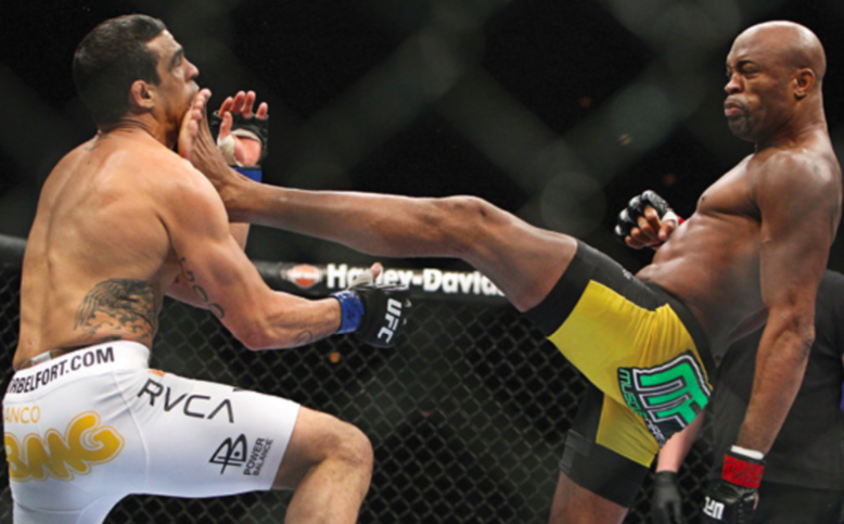 Anderson Silva’s front kick knockout of Vitor Belfort at UFC 126 back in 2011 is still one of the most beautiful knockouts in UFC history. The way Silva planted the ball of his feet upon Vitor’s chin shows why he was the most precise and accurate strikers in the business. Vitor saw it coming but never expected it to land on his chin.