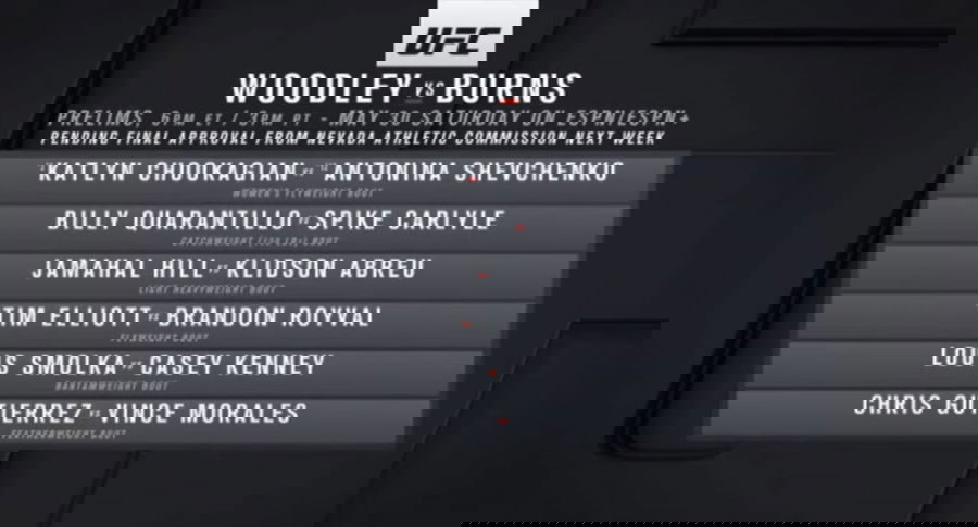 On ESPN MMA, he said, “As things started to fall apart we continued to figure out who still wanted to fight. And then the Woodley-Burns match is a fight we really wanted to make. Gilbert Burns has been on an absolute tear. He’s undefeated at this weight since he went to 170 and he beat Demain Maia which is a big deal. This kid’s on fire right now. It should be a big deal.”