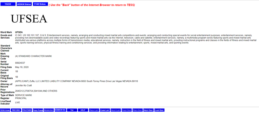 Dana White and the UFC have acquired four trademarks for “UFSEA”