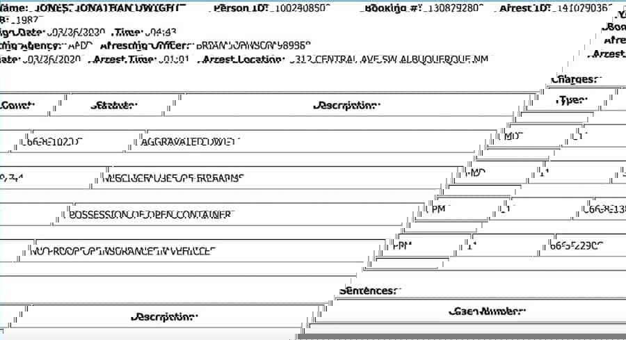Jones was charged with aggravated DWI, negligent use of a firearm, the possession of an open container and driving without proof of insurance.