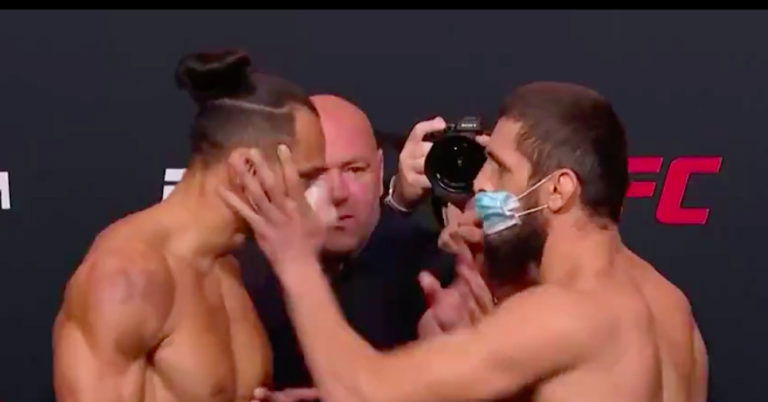 During the official face-off, things turned ugly as Imadaev slapped Pereira following an intense stare-down. Although the security was quick to bring it under control, Pereira had set his eyes on his Russian rival.