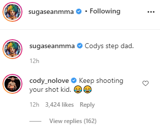 However, it did not stop the fighters from going back-and-forth online. Recently, Sean posted a picture of himself on Instagram with a caption that says, “Codys step dad.” Well, this got the attention of the former champion. Cody wasted no time to respond to Sean.