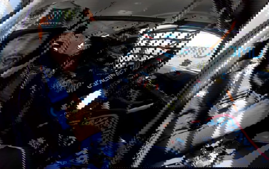 The Welterweight gives a nervous smile ahead of his Rallycross lap