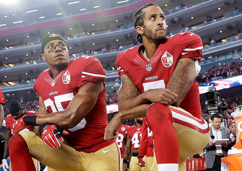 “I am not going to stand up to show pride in a flag for a country that oppresses black people and people of color. To me, this is bigger than football. And it would be selfish on my part to look the other way,” said Kaepernick.