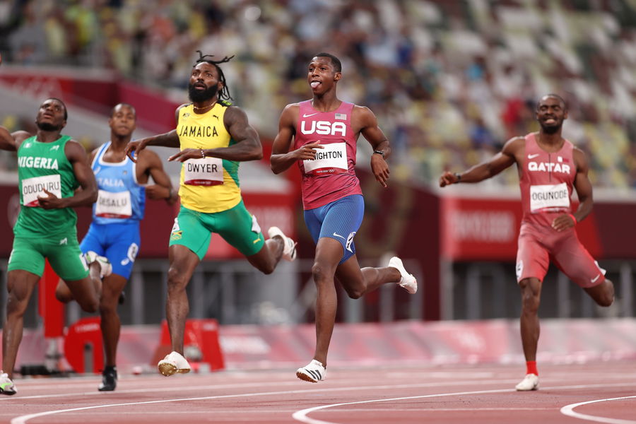 TOKYO, JAPAN – AUGUST 03: Erriyon Knighton of Team United States reacts after competing in the Men’s 200m Semi Final on day eleven of the Tokyo 2020 Olympic Games at Olympic Stadium on August 03, 2021 in Tokyo, Japan. (Photo by David Ramos/Getty Images)