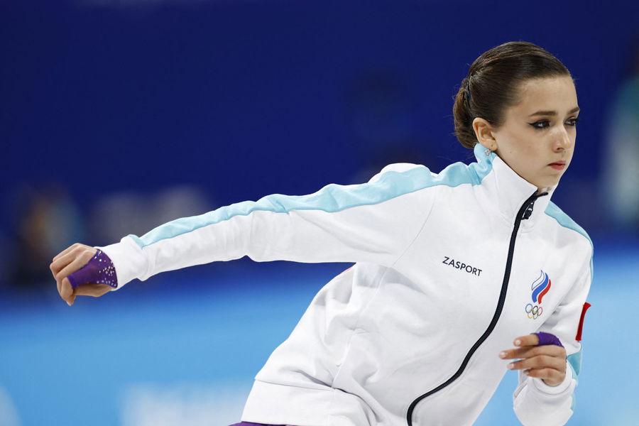 2022 Beijing Olympics – Figure Skating – Women Single Skating – Short Program – Capital Indoor Stadium, Beijing, China – February 15, 2022. Kamila Valieva of the Russian Olympic Committee warms up before competing. REUTERS/Evgenia Novozhenina