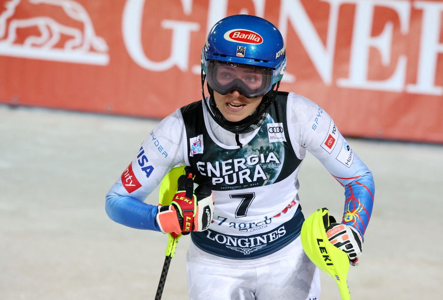 Alpine Skiing – FIS Alpine Ski World Cup Slalom – Zagreb, Croatia – January 4, 2022 Mikaela Shiffrin of the U.S. reacts after her second run REUTERS/Antonio Bronic