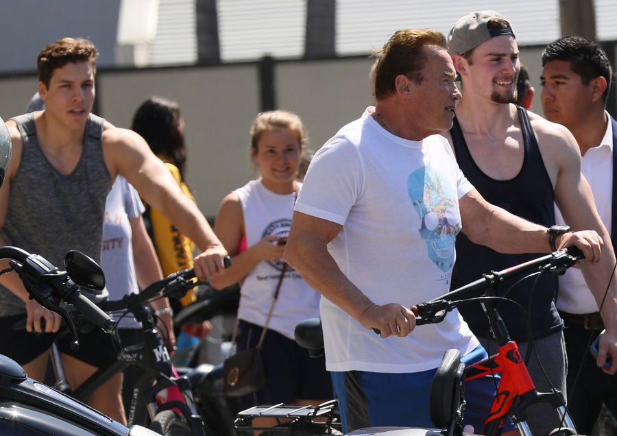 LOS ANGELES, CA – MARCH 14: Arnold Schwarzenegger (R) and his son Joseph Baena (L) are seen on March 14, 2018 in Los Angeles, California. (Photo by JB Lacroix/GC Images)