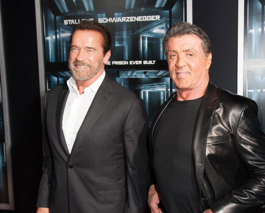 NEW YORK, NY – OCTOBER 15: Actor Arnold Schwarzenegger and Sylvester Stallone attends “Escape Plan” New York Premiere at Regal E-Walk on October 15, 2013 in New York City. (Photo by Dave Kotinsky/Getty Images)