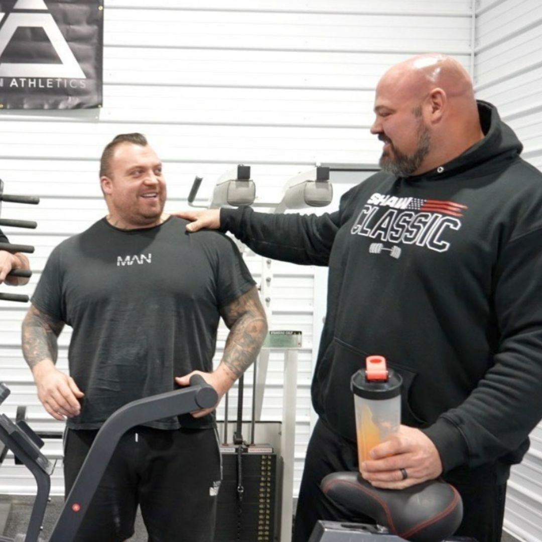 Besides winning the 2017 Strongman competition, Hall has a notable digital presence. His social media is packed with hilarious stunts and videos. However, even though he doesn’t compete anymore, the English strongman traveled to America to attend an event. And thus, he decided to meet his buddy at his home. In fact, there he nudged Shaw with a pun while sitting for a chat.