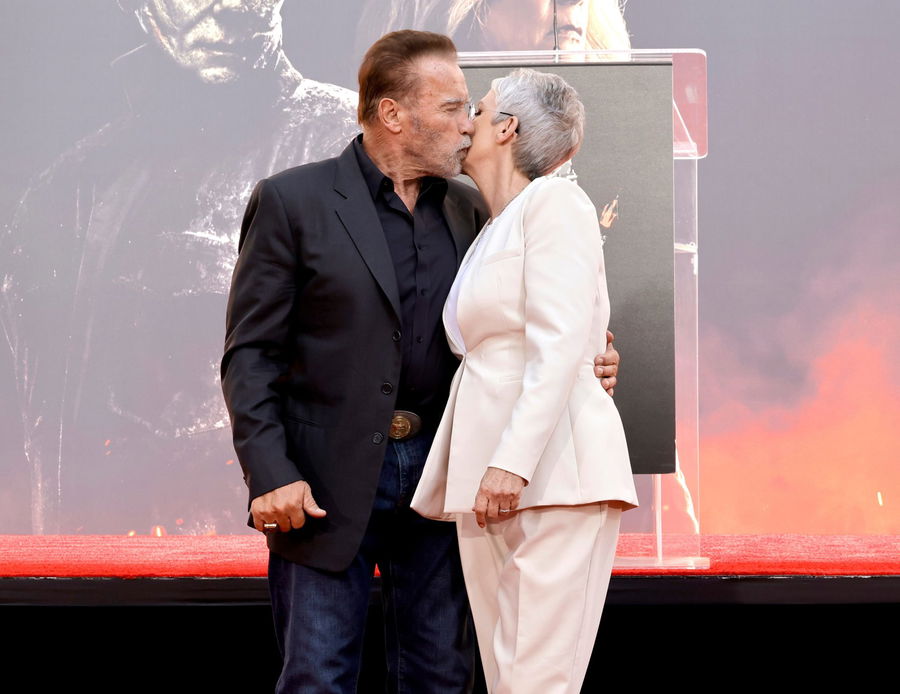 HOLLYWOOD, CALIFORNIA – OCTOBER 12: (L-R) Arnold Schwarzenegger and Jamie Lee Curtis attend the Jamie Lee Curtis Hand and Footprint In Cement Ceremony at TCL Chinese Theatre on October 12, 2022, in Hollywood, California. (Photo by Kevin Winter/Getty Images)