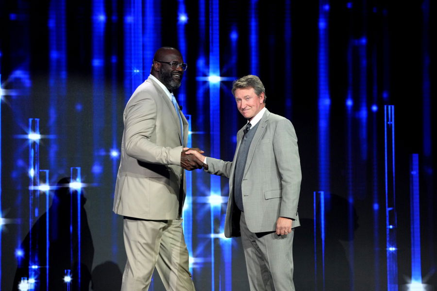 NEW YORK, NEW YORK – MAY 18: (L-R) Shaquille O’Neal, Inside the NBA, Turner Sports, and Wayne Gretzky, NHL on TNT, Turner Sports, speak onstage during the Warner Bros. Discovery Upfront 2022 show at The Theater at Madison Square Garden on May 18, 2022, in New York City. (Photo by Kevin Mazur/Getty Images for Warner Bros. Discovery)