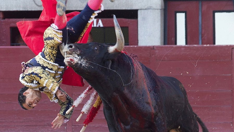 Alejandro Conquero, a professional matador was participating in a bullfighting event at the Cenicientos, a town in the Madrid area. At the arena wearing the traditional matador gear he teased the bull with his pink and yellow cape. As the bull approached him his horns hit the matador and tossed him in the air. When he fell on his face on the ground, the bull again approached him inserting its horn into his lower back throwing him in the air with his horn still inside him, and slamming him on the ground again.