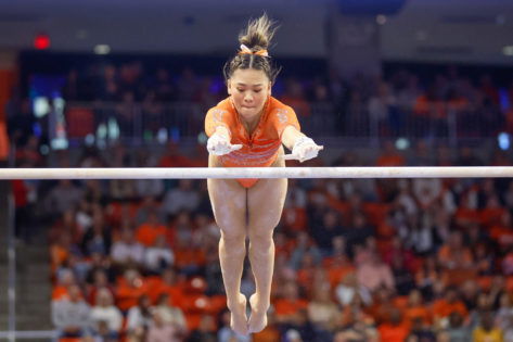 AUBURN, AL – FEBRUARY 10: Sunisa Lee of Auburn competes on the uneven bars during a meet against LSU at Neville Arena on February 10, 2023 in Auburn, Alabama. (Photo by Stew Milne/Getty Images)