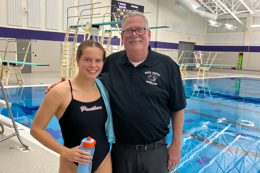 Adelyn Flessner still flips and twists through the air. But she doesn’t land on the mat anymore. Instead, after completing her flips and twists, her body goes into the deep end of the pool. Yes, she is a diver now. She didn’t step into the sport, riding with her hobby only or just for the sake of joining. Rather, the North Central diver has a specific goal to achieve in the diving sport.