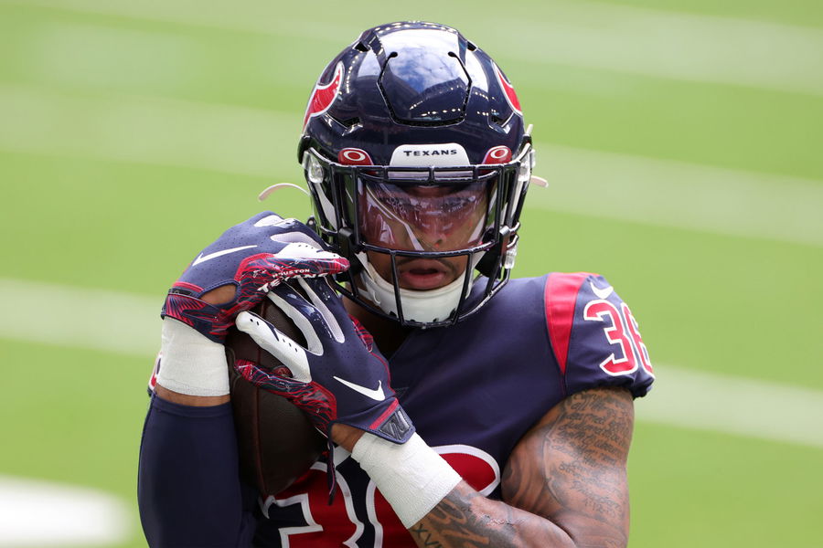 HOUSTON, TEXAS – DECEMBER 27: Safety Jonathan Owens #36 of the Houston Texans warms up prior to the game against the Cincinnati Bengals at NRG Stadium on December 27, 2020 in Houston, Texas. (Photo by Carmen Mandato/Getty Images)