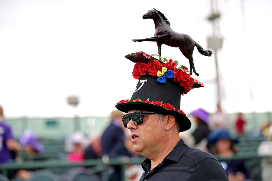 Horse Racing: 148th Kentucky Derby, May 7, 2022 Louisville, KY, USA A fan wears a festive hat before the 148th running of the Kentucky Derby at Churchill Downs. Mandatory Credit: Jordan Prather-USA TODAY Sports, 07.05.2022 12:27:11, 18222061, NPStrans, Horse Racing, Kentucky Derby, Churchill Downs PUBLICATIONxINxGERxSUIxAUTxONLY Copyright: xJordanxPratherx 18222061