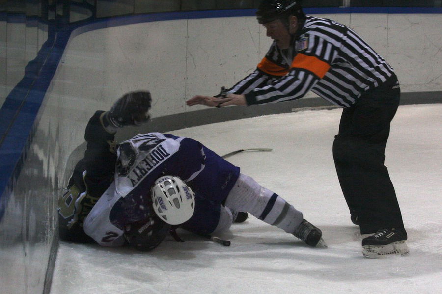 Why? Well, multiple fights broke out in the Rochester zone when the horn sounded to signal the end of the second period. The fight resulted in six ejections and eight fighting majors. But fans were only irked by the match officials’ actions during the fiasco.