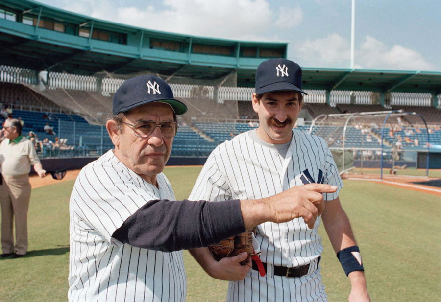 Yogi Berra with son Dale at the New York Yankees spring training in March 1985 in Florida. (AP Photo)