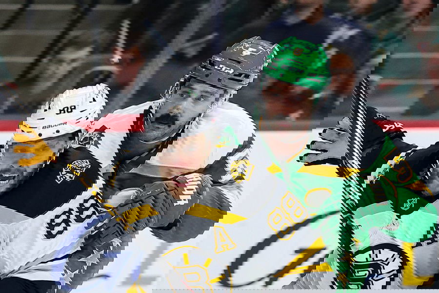 The Bruins fell 1-0 to the Wild on Sunday in a game that felt like repeatedly running into a brick wall. The night’s only goal came midway through the second period when Frederick Gaudreau got a stick on Marcus Johansson’s shot, redirecting it past Jeremy Swayman—who had no chance on that one. Swayman still put up a solid performance with 21 saves, but it didn’t matter because, on the other end, Filip Gustavsson was a fortress, stopping all 28 shots Boston threw at him.