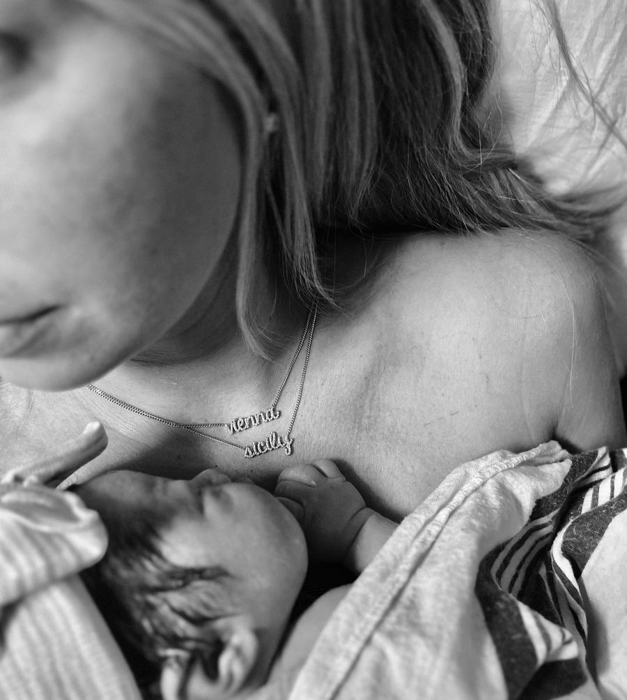 In a recent post, Sarah displayed a picture where she held her newborn tenderly in her arms. Interestingly, she also had two chains around her neck. While one chain had the name Sicily, the other had the name Vienna. She captioned this post,