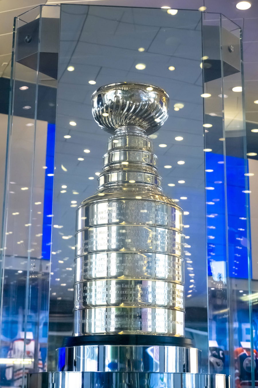 Edmonton, Alberta, Canada. Apr 3, 2023. A Stanley Cup trophy at the Rogers Place Arena. Concept: NHL, Eishockey Herren, USA Stanley Cup Playoffs Edmonton, Alberta, Canada. Apr 3, 2023. A Stanley Cup trophy at the Rogers Place Arena. Concept: NHL Stanley Cup Playoffs LicenseRM 20090384 Copyright: xZoonar.com/MarvinxSamuelxTOLENTINO-PINEDAx 20090384