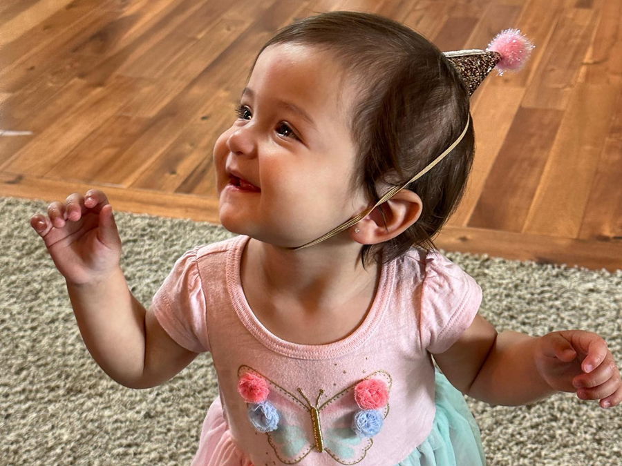 She captioned it, “CUTE content for your feed. Our 2-yr-old cardiac warrior, Victoria Olympia, is cheering on Team USA! A BIG thank you to GK for providing the stunning Team USA replica leotards!”