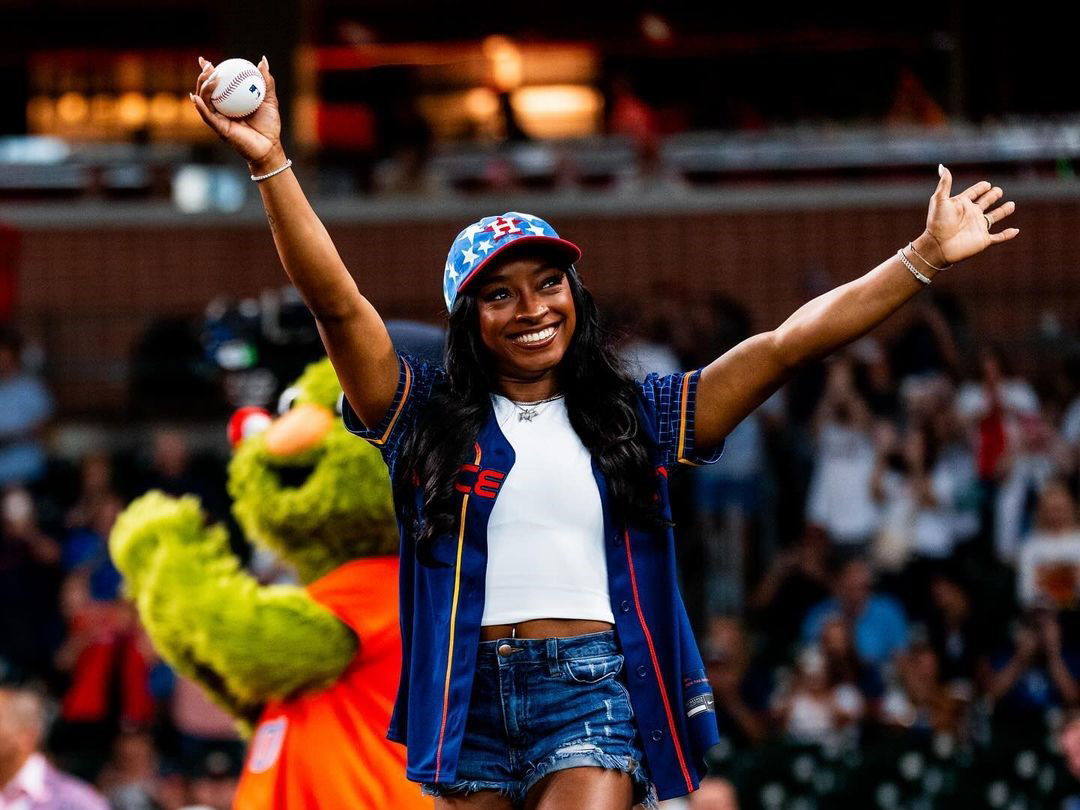 Donning a sky-blue cap, chic white cowboy-themed boots, and No. 24 Astros jersey—a jersey number that was retired in 2005 by the franchise to honor Jimmy Winn—Biles didn’t do her usual gymnastics moves before she threw a straight-up first pitch over the plate. Jon Singleton caught the pitch and later walked over to return the ball. While customs dictate that it is the player who signs the ball to return to the person who pitches the ball, it was actually Biles who autographed it for him. Regardless, it wasn’t missing flip or the combination of a twisting somersault and backflip in Biles’s past signature first pitches that caught Cecile Landi’s eyes.