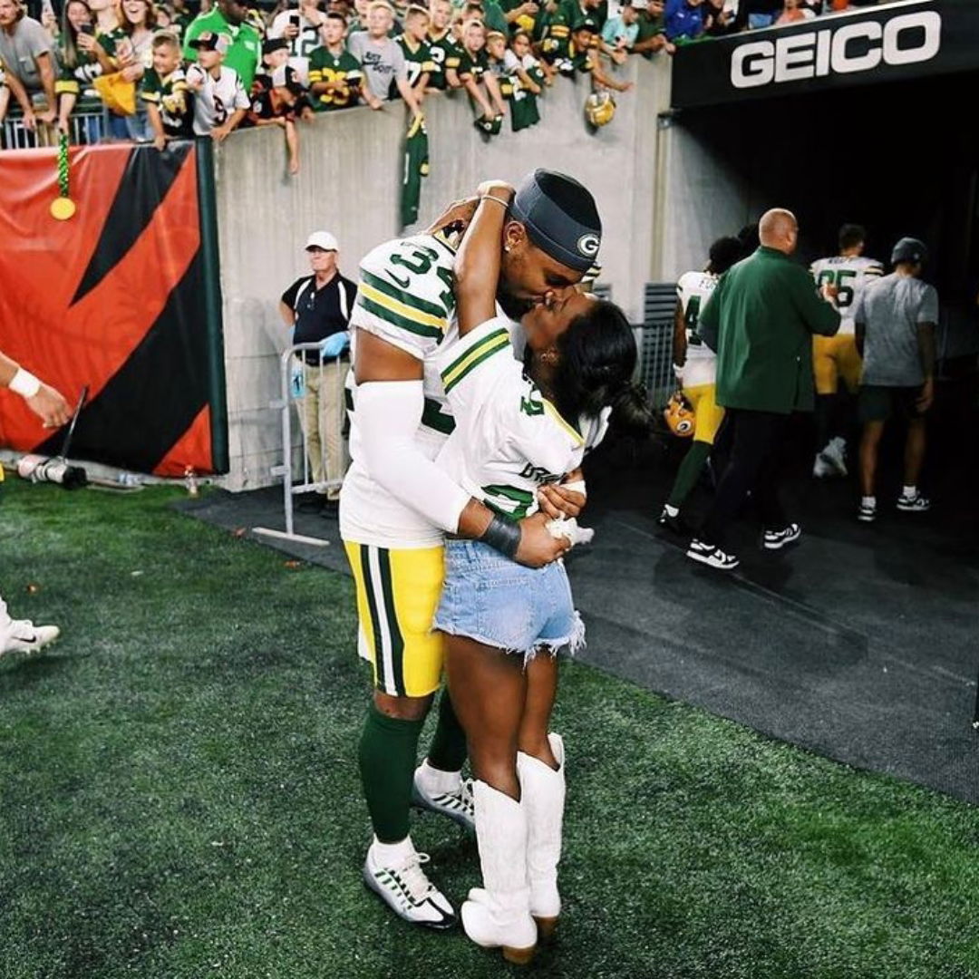Simone Biles on August 11, 2023, at Paycor Stadium, first appeared to support Owens. This is where the Cincinnati Bengals faced off against the Green Bay Packers in a preseason showdown. The Packers secured an impressive 36-19 victory, driven by Owens’ standout debut as safety. The NFL safety shone brightly, tallying four tackles, deflecting a pass, and recovering a fumble, highlighting his athletic prowess.