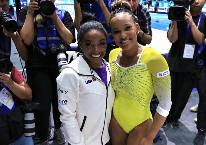 On the mats, Rebeca Andrade and Simone Biles do not leave an inch to each other. But that isn’t the case off the mats, according to both the elite gymnasts. On several occasions, Andrade has often shown her love for the GOAT. “I admire her for being such an amazing role model to younger gymnasts too.” Simone Biles reciprocated this by “passing the torch” when she placed a crown on Andrade’s head at the 2023 World Championship podium.