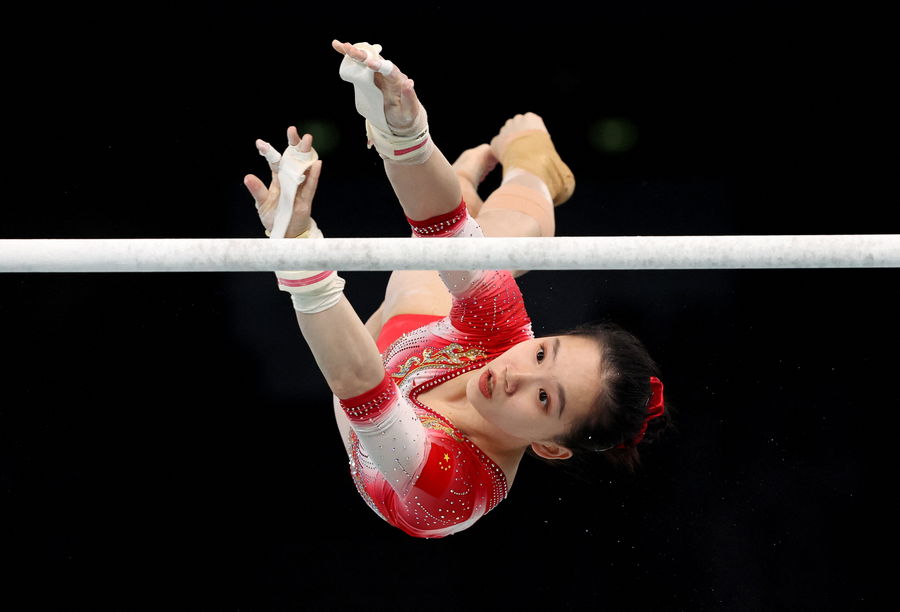 Paris 2024 Olympics – Artistic Gymnastics – Women’s Podium Training – Bercy Arena, Paris, France – July 25, 2024. Yushan Ou of China during training. REUTERS/Mike Blake