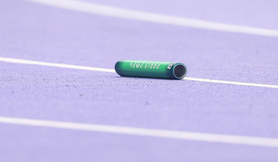 Paris 2024 Olympics – Athletics – Women’s 4 x 400m Relay Final – Stade de France, Saint-Denis, France – August 10, 2024. Baton dropped by Jamaica lies on the track REUTERS/Hannah Mckay