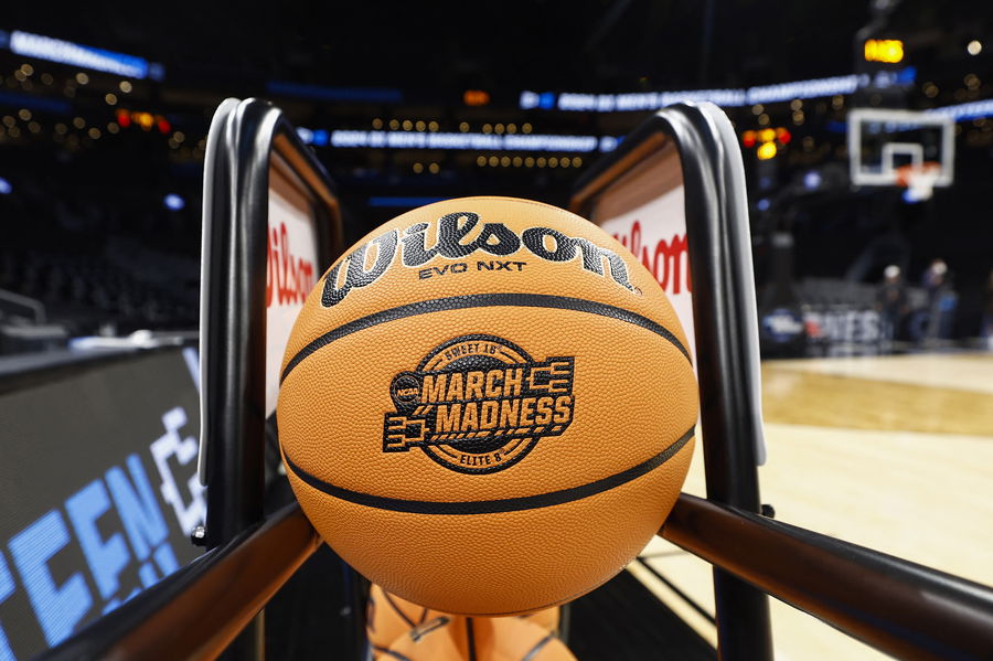 Mar 27, 2024; Boston, MA, USA; A Wilson NCAA Sweet 16 March Madness ball is seen before San Diego State practices for their East semifinal game against Connecticut at TD Garden. Mandatory Credit: Winslow Townson-USA TODAY Sports