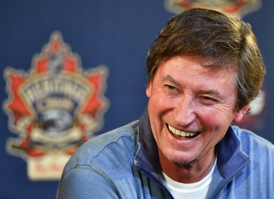 WINNIPEG, MB – OCTOBER 22: Wayne Gretzky #99 of the Edmonton Oilers alumni talks to the media during the 2016 Tim Hortons NHL Heritage Classic alumni game at Investors Group Field on October 22, 2016 in Winnipeg, Canada. (Photo by Minas Panagiotakis/NHLI via Getty Images)