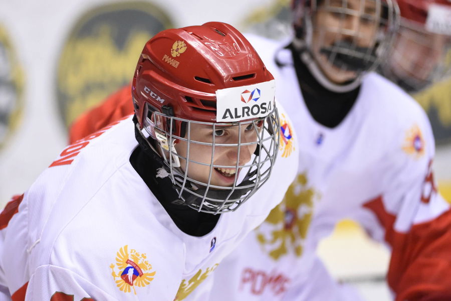 ÖRNSKÖLDSVIK 20190428 Rysslands Rodion Amirov jublar efter att han kvitterat till 2- 2 under söndagens finalmatch mellan Sverige och Ryssland i U18-VM i Fjällräven Center. ÖRNSKÖLDSVIK SVERIGE x10750x *** ÖRNSKÖLDSVIK 20190428 Russias Rodion Amirov celebrates after he equalized 2 2 during Sundays final match between Sweden and Russia in the U18 World Cup in Fjällräven Center ÖRNSKÖLDSVIK SWEDEN x10750x PUBLICATIONxNOTxINxDENxNORxSWExFIN Copyright: xErikxMartensson/TTx U18-VM FINAL SWE-RUS