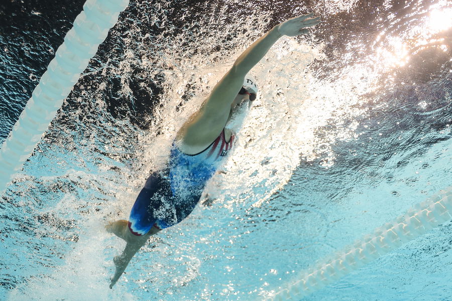 Paris 2024 Olympics – Swimming – Women’s 400m Freestyle – Heats – Paris La Defense Arena, Nanterre, France – July 27, 2024. Katie Ledecky of United States in action during heat 3. REUTERS/Marko Djurica