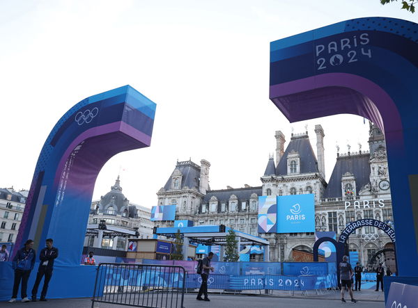 Paris 2024 Olympics – Athletics – Men’s Marathon – Paris, France – August 10, 2024. The La Terrasse des Jeux an Olympic festival space located at the Hotel de Ville in Paris is pictured ahead of the race. REUTERS/Isabel Infantes