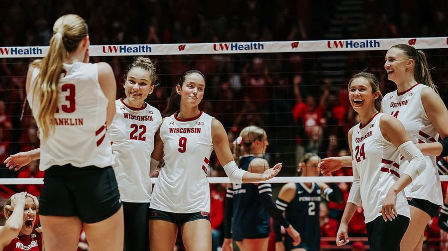 No. 7 @BadgerVB takes down No. 3 Penn State in sweeping style ‼️#B1GVolleyball pic.twitter.com/SsB0mg3SxK