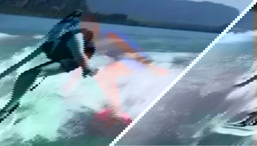 Interestingly, as she speeds through the stream, the woman gyrates the ring like a pro, all while maintaining the balance on the board. Though it is comparatively difficult to manage two tasks at a time while surfing on the wavy pathway, the woman surfer pulled off the stunt quite diligently.