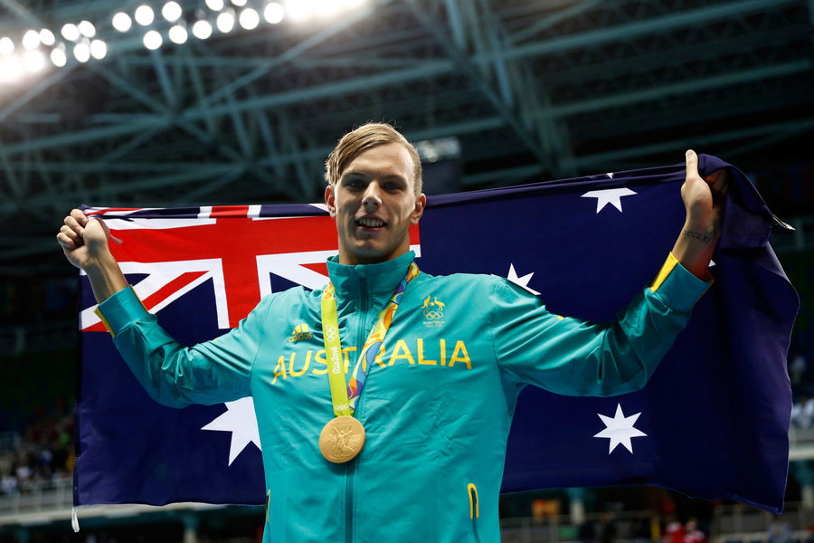 RIO DE JANEIRO, BRAZIL – AUGUST 10: Kyle Chalmers of Australia celebrates winning gold in the Men’s 100m Freestyle Final on Day 5 of the Rio 2016 Olympic Games at the Olympic Aquatics Stadium on August 10, 2016 in Rio de Janeiro, Brazil. (Photo by Clive Rose/Getty Images)