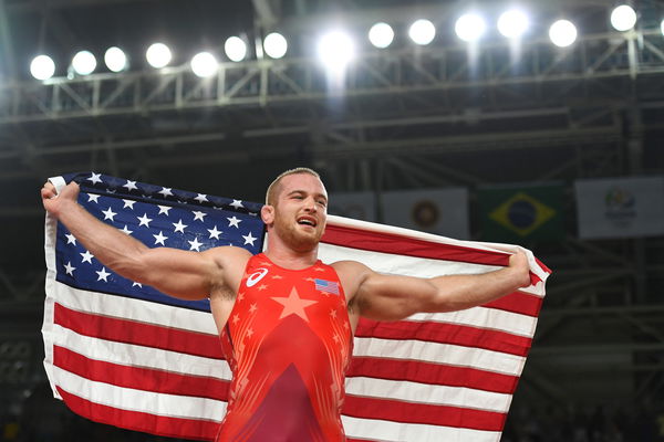 RIO DE JANEIRO, BRAZIL – AUGUST 21: Kyle Frederick Snyder of the United States celebrates after winning gold over Khetag Goziumov (not pictured) of Azerbaijan during the Men’s Freestyle 97kg Gold medal match on Day 16 of the Rio 2016 Olympic Games at Carioca Arena 2 on August 21, 2016 in Rio de Janeiro, Brazil. (Photo by Laurence Griffiths/Getty Images)