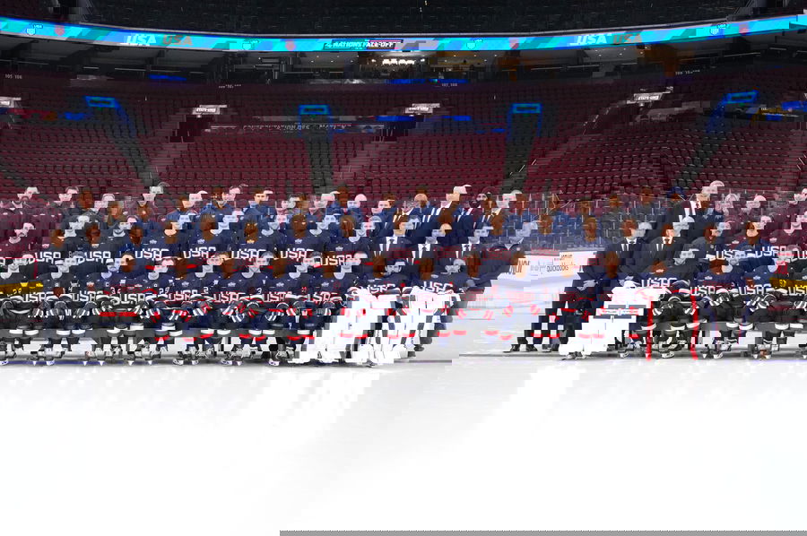 MONTREAL, QUEBEC – FEBRUARY 11: Team United States pose for a group photo at the 2025 NHL 4 Nations Face-Off media day at Bell Centre on February 11, 2025 in Montreal, Quebec. (Photo by Andre RInguette/4NFO/World Cup of Hockey via Getty Images)