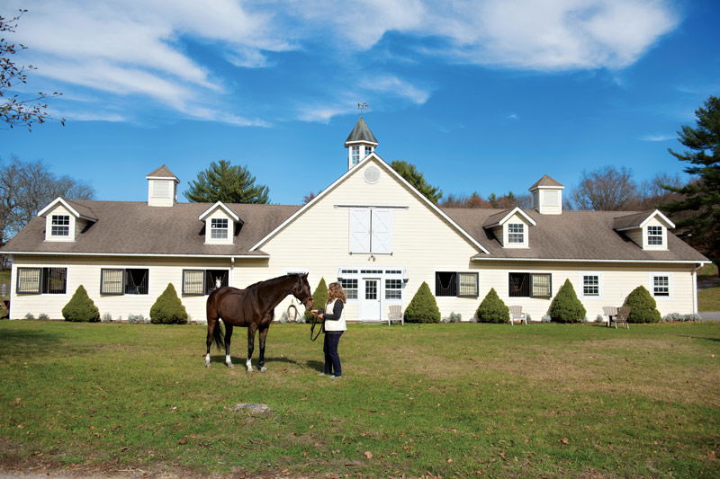 There are many barns on the equestrian estate, with enough stalls to house over 70 horses. Almost a hundred acres of paddocks and a Grand Prix field are available. Both the Bedford Riding Lanes trail network and the nearby Guard Hill Preserve are adjacent to the property.