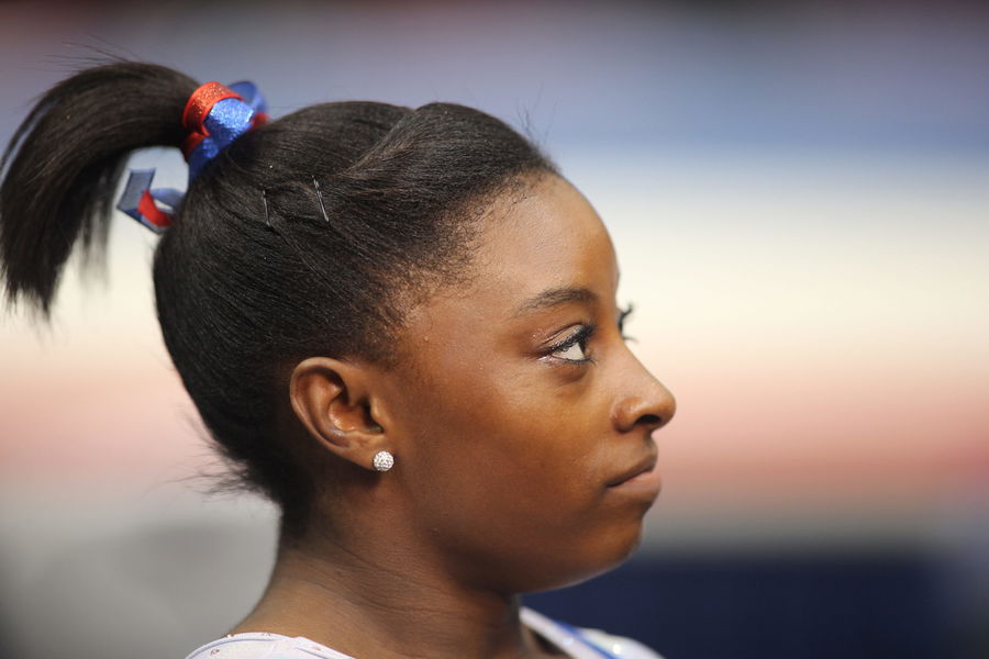 Simone Biles, Spring, Texas, after winning the All-Round title during the Senior Women Competition at The 2013 P&G Gymnastics Championships, USA Gymnastics’ National Championships at the XL, Centre, Hartford, Connecticut, USA. 17th August 2013. Photo Tim Clayton (Photo by Tim Clayton/Corbis via Getty Images)