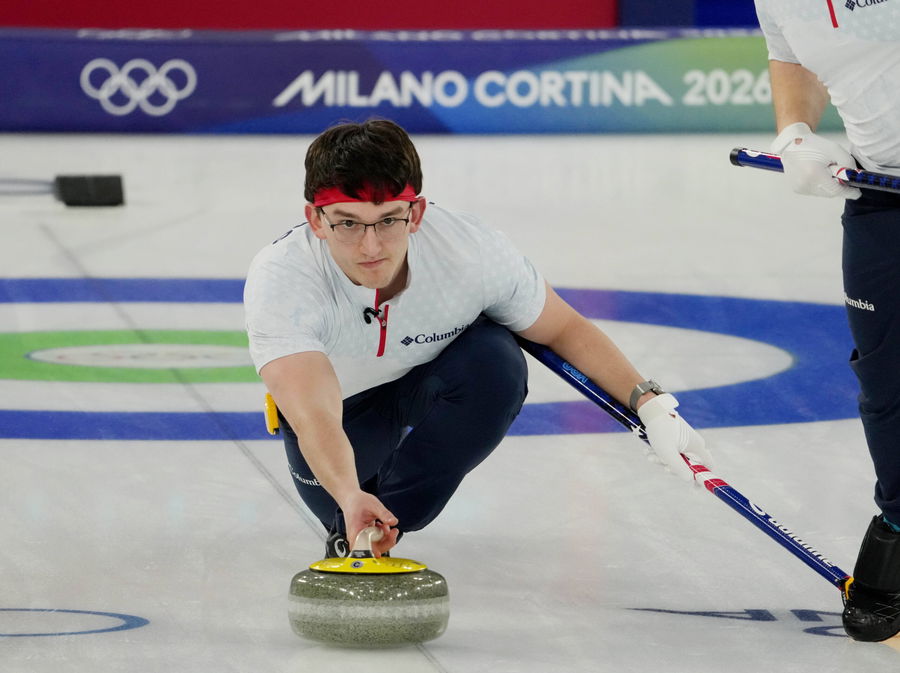 Olympics: Curling-Men Round Robin Feb 11, 2026 Cortina d Ampezzo, Italy Aidan Oldenburg of the United States in action against Czechia in a mens curling round robin match during the Milano Cortina 2026 Olympic Winter games, Winterspiele,Spiele, Summer games at Cortina Curling Olympic Stadium. Cortina d Ampezzo Cortina Curling Olympic Stadium Italy, EDITORIAL USE ONLY PUBLICATIONxINxGERxSUIxAUTxONLY Copyright: xEricxBoltex 20260211_jla_bb5_132